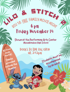 Mark your calendars! RSU 18’s Lifestyles Wellness Team is holding its annual FREE community movie night on Friday, November 14 at 6pm! Come watch LILO & STITCH 2 in a movie theater atmosphere at the Messalonskee Performing Arts Center. A light snack will be provided outside the PAC (no food/drink inside the theater). Hope to see you there! #WeAreRSU18
