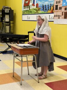 Third through fifth grade students from Belgrade, Oakland, and Sidney immersed themselves in the roles of historical and imaginative characters. After researching their chosen figures, they explored the art of epic storytelling—learning how poets of the past used vivid imagery and figurative language to portray heroic journeys.